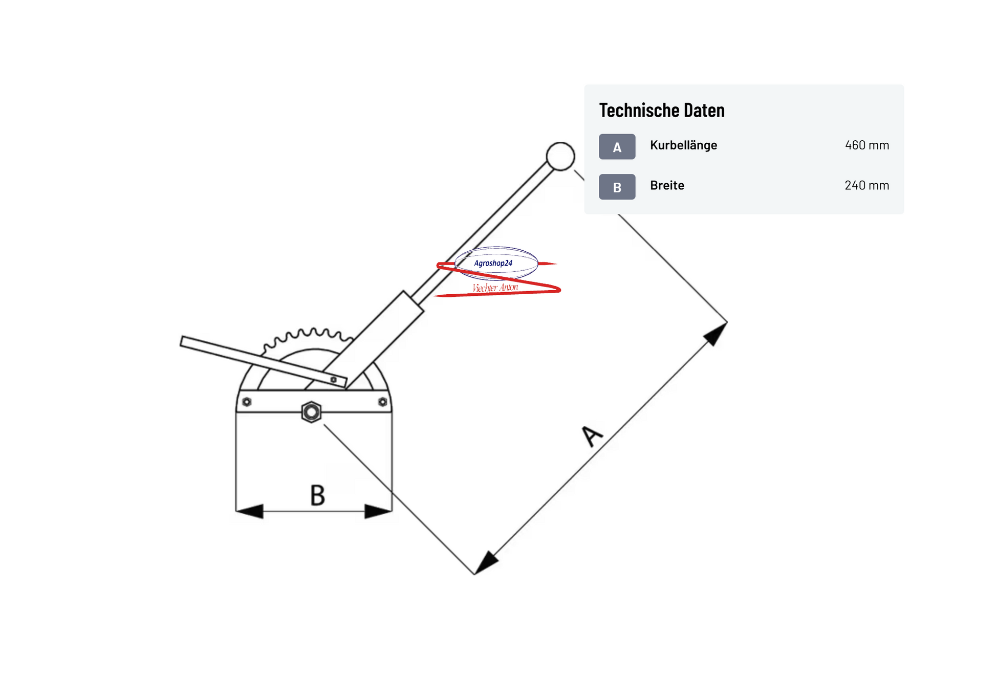 Mit einer Kurbellänge von 460 mm und einer Breite von 240 mm bietet er optimale Hebelwirkung für sichere Bremsoperationen.
