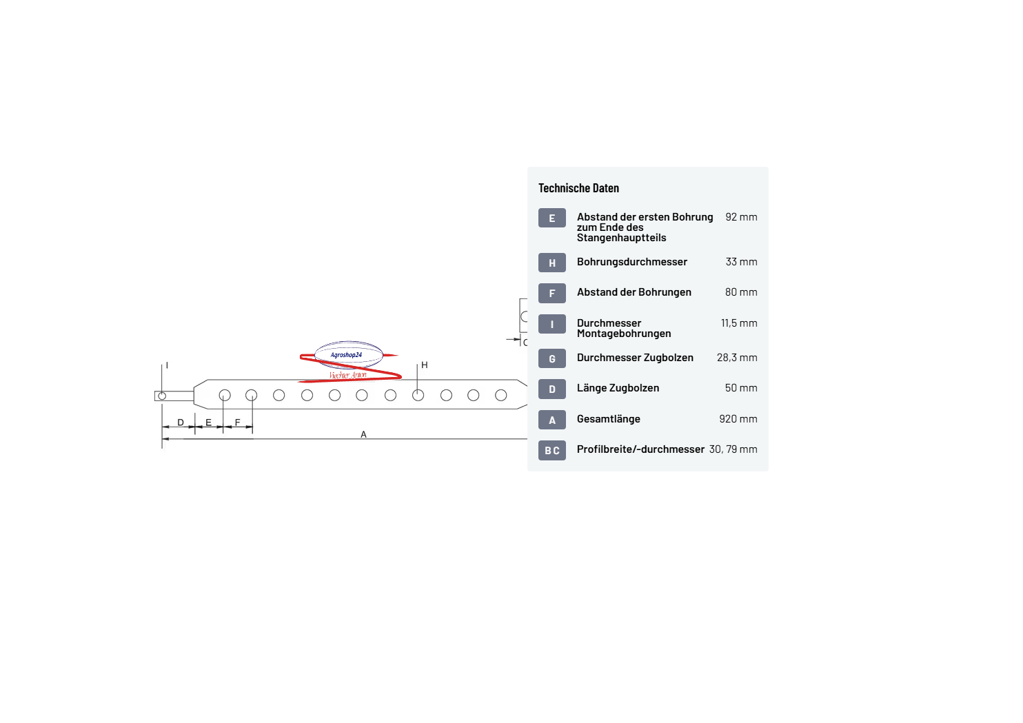 Mit 28,3mm Zugbolzen (50mm Länge) und 11,5mm Montagebohrungen gewährleistet sie zuverlässige Befestigung an Ihrer Landmaschine.