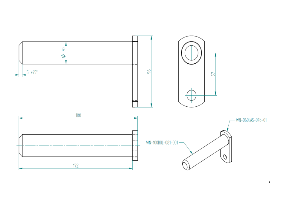 Bolzen 30mm x 180 mit Lasche für Schnellwechselrahmen