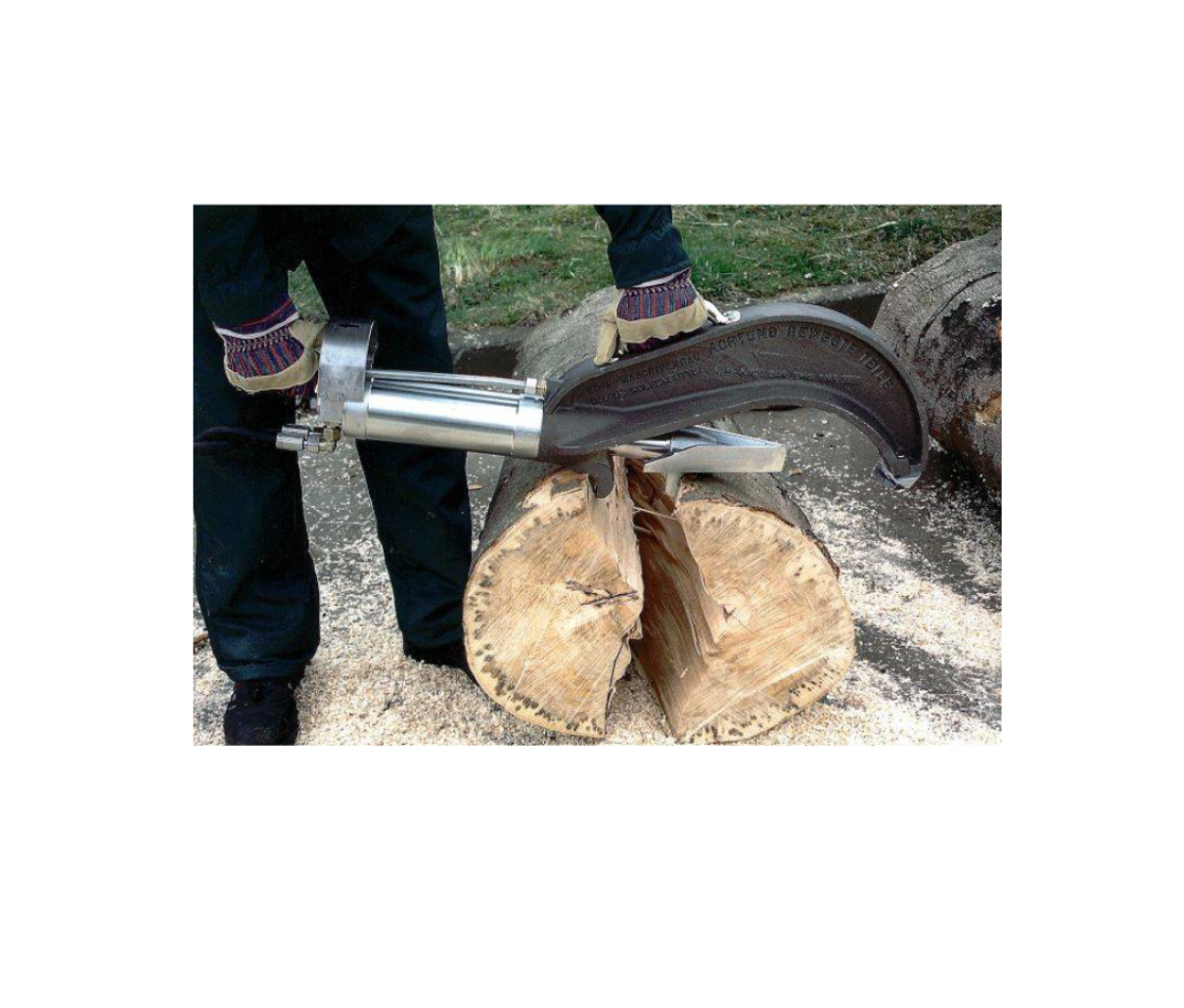 Das Gerät spaltet Holz in Bodenlage und eignet sich ebenso zum Aufspalten von Baumkronen.