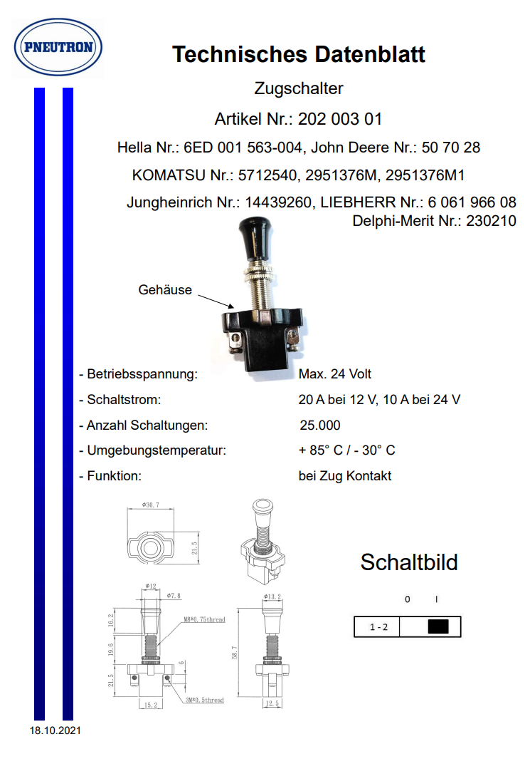 Zuverlässiger Zugschalter (EL230210) von Pneutron für professionelle Traktoranwendungen.
