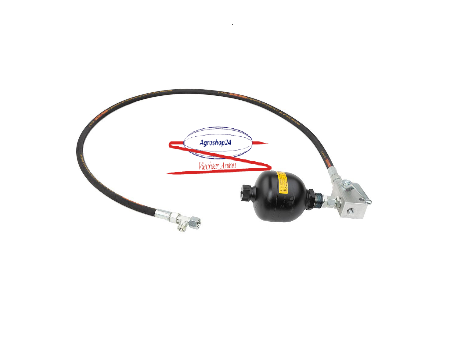 Bausatz mit Verschraubungen, Absperrhahn, Hydraulikspeicher und Hydraulikschlauch