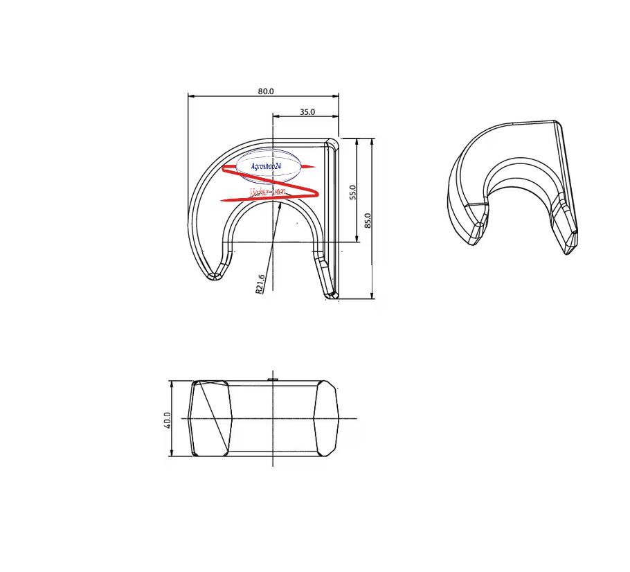 Der FT2110 Haken ist ein präzise gefertigtes Befestigungselement aus blankem Stahl, ausgelegt für Euro-Norm Schnellwechselrahmen. Mit einer Plattendicke von 40 mm, einer Gesamtlänge von 85 mm und einer Breite von 80 mm gewährleistet er eine stabile und langlebige Verbindung. Der obere Bolzen hat einen Durchmesser von 40 mm und sorgt für sicheren Halt. Dieser Koppelhaken eignet sich ideal zum Austausch abgenutzter oder defekter Befestigungsteile an Frontladergerätschaften und ermöglicht eine zuverlässige Montage an Schnellwechselrahmen. Seine guten Schweißeigenschaften erleichtern Reparatur und Anpassung vor Ort.