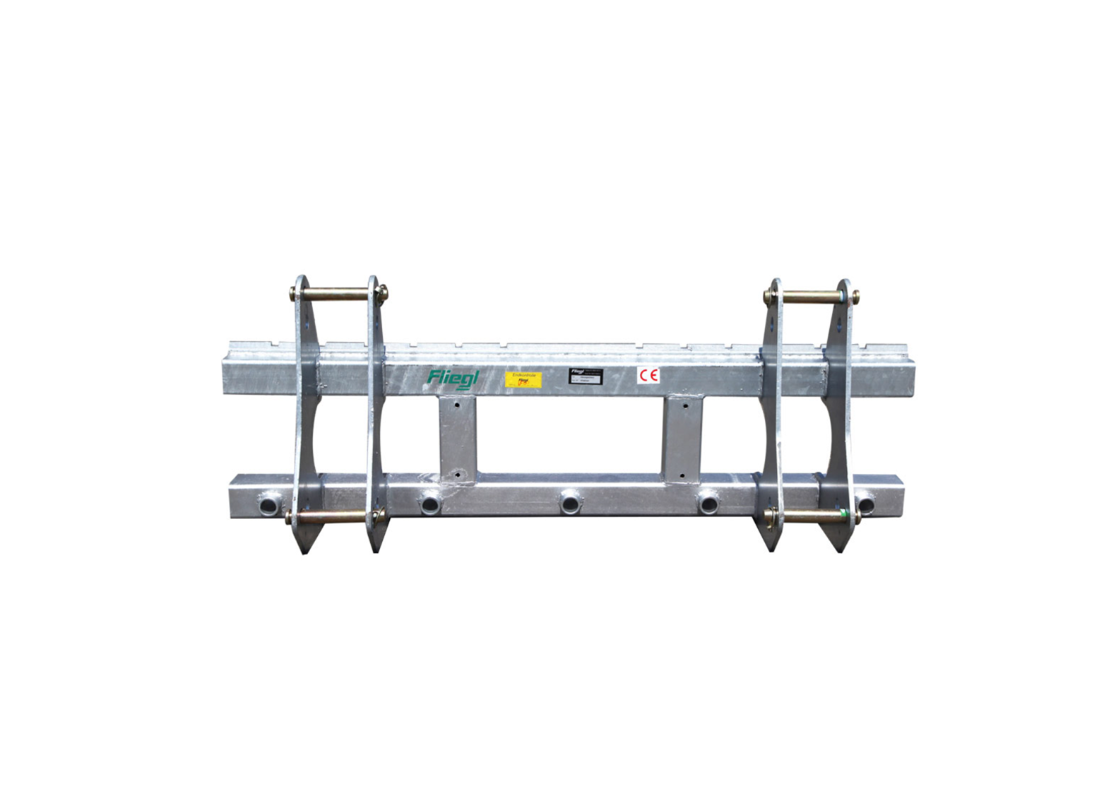 Die schräg gefräste Führungsschiene nach ISO 2328 ermöglicht ein schnelles, leichtes und einfaches Verstellen der Gabeln, ohne dass diese verkanten. Zudem ist die Umrüstung mit Rundballenzinken dank der vorhandenen Konus Buchsen einfach und langfristig gegen Korrosion geschützt durch die vollverzinkte Ausführung.
