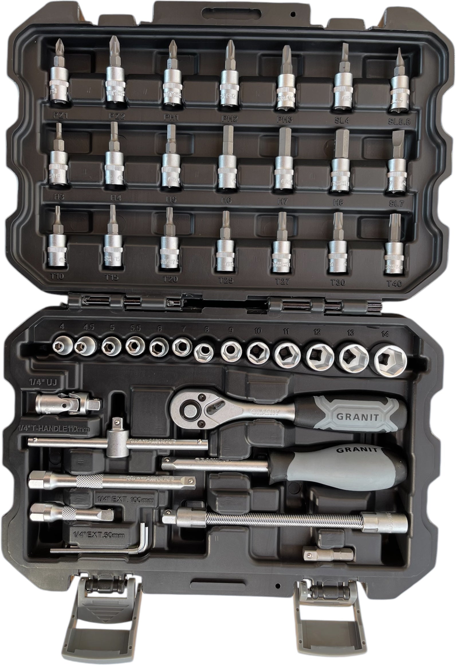 GRANIT BLACK EDITION 1/4" Steckschlüssel-Satz, 45-tlg., metrisch