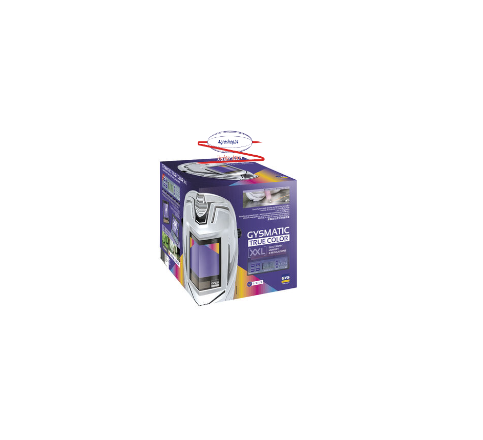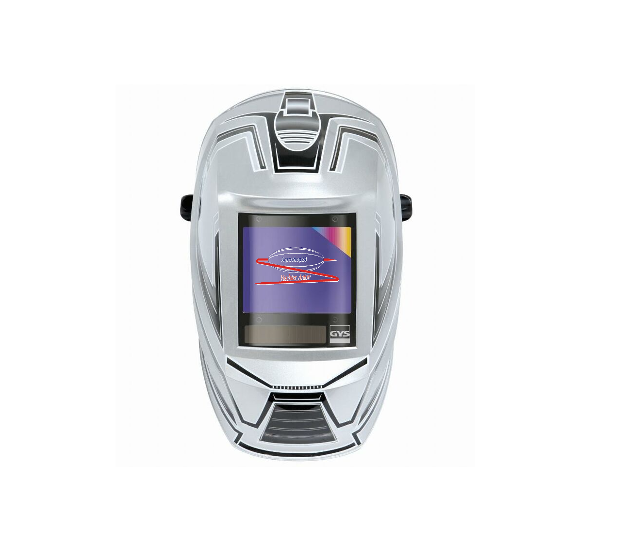 Dieser GYS Schweißerhelm GYSMATIC bietet professionellen Schutz mit LCD-Filter und 4 Sensoren für ein breites Sichtfeld von 100 x 60 mm.
