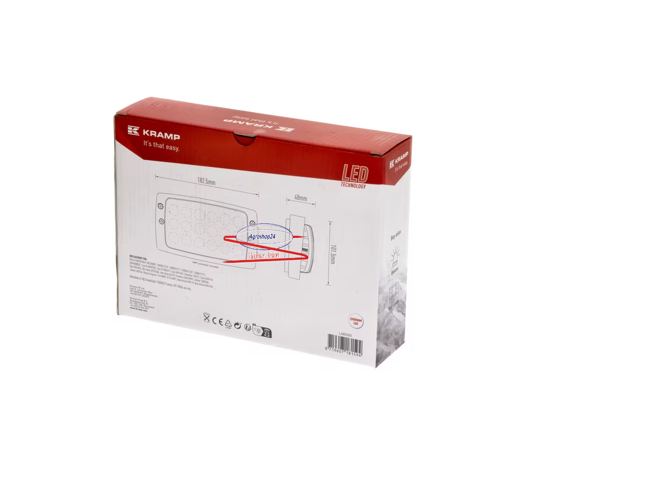Der LA80300 LED-Dach-Arbeitsscheinwerfer von Kramp mit 3375 Lumen ist für diverse Maschinen- und Fahrzeugmarken wie Case IH, Caterpillar, Claas, Fendt, Hako, JCB, John Deere, Komatsu, Liebherr, Massey Ferguson, New Holland, Steyr, Terex und Valtra konzipiert.