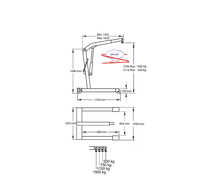 Mit einer Hubhöhe von bis zu 3.110 mm und einem Eigengewicht von 147 kg kombiniert dieser Kran Stabilität mit Mobilität – ein zuverlässiger Partner für professionelle Werkstätten.