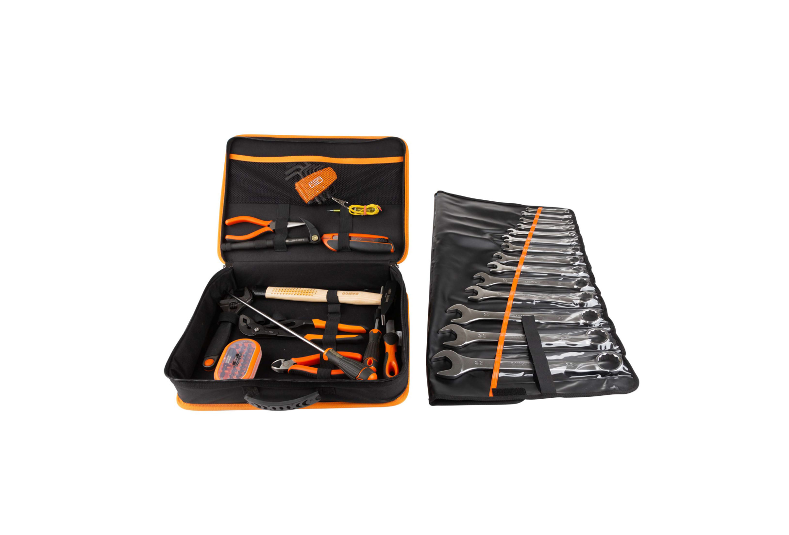 Profi Nutzfahrzeug-SET Bahco bestückt / 65-tlg. / Stoff-Werkzeugmappe mit gummiertem Griff