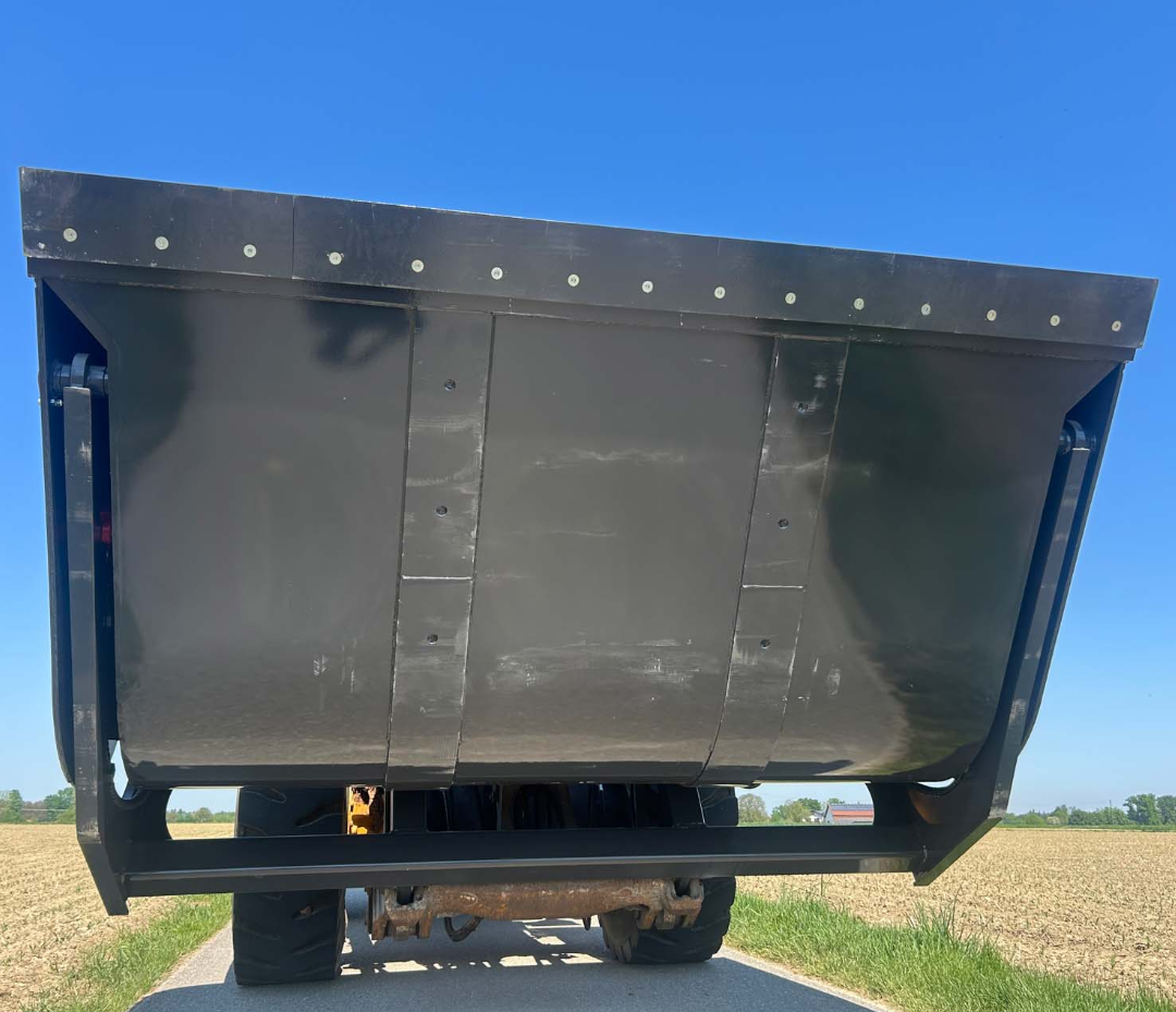 Die Radlader Hochkippschaufel »T-Rex« von Fliegl mit 3000 mm Breite überzeugt durch eine Schürfleiste aus hochverschleißfestem Stahl HB 500 (200 mm hoch, 20 mm stark), die eine lange Lebensdauer garantiert.