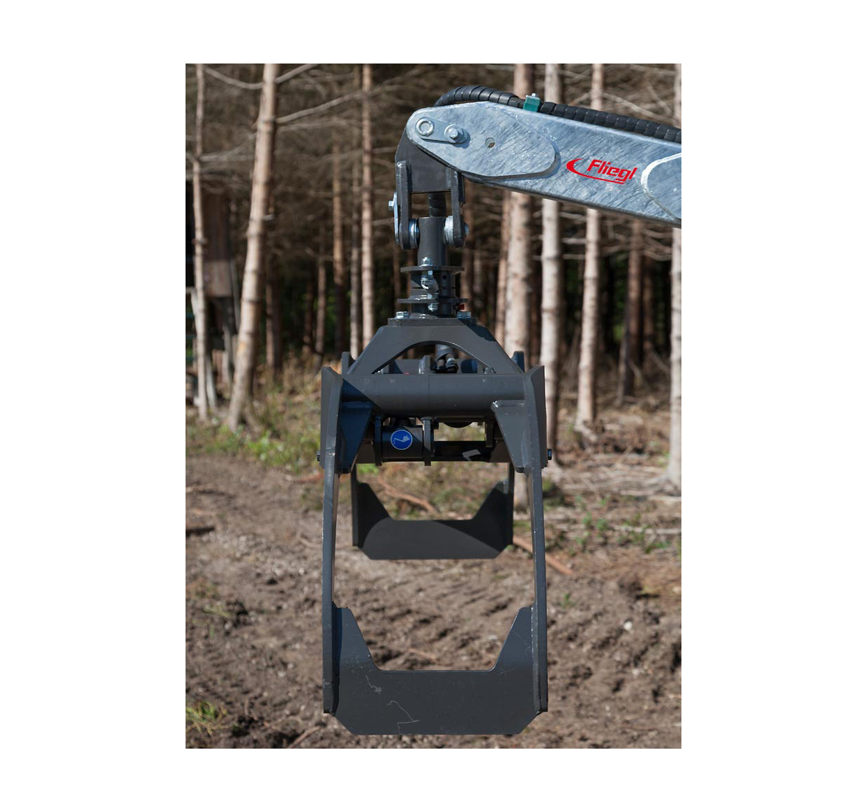 - Schwenkbereich 90° links und rechts: drei Drehpunkte gewährleisten eine perfekte Anpassung der Rückezange für jedes Gelände und für jede Anforderung