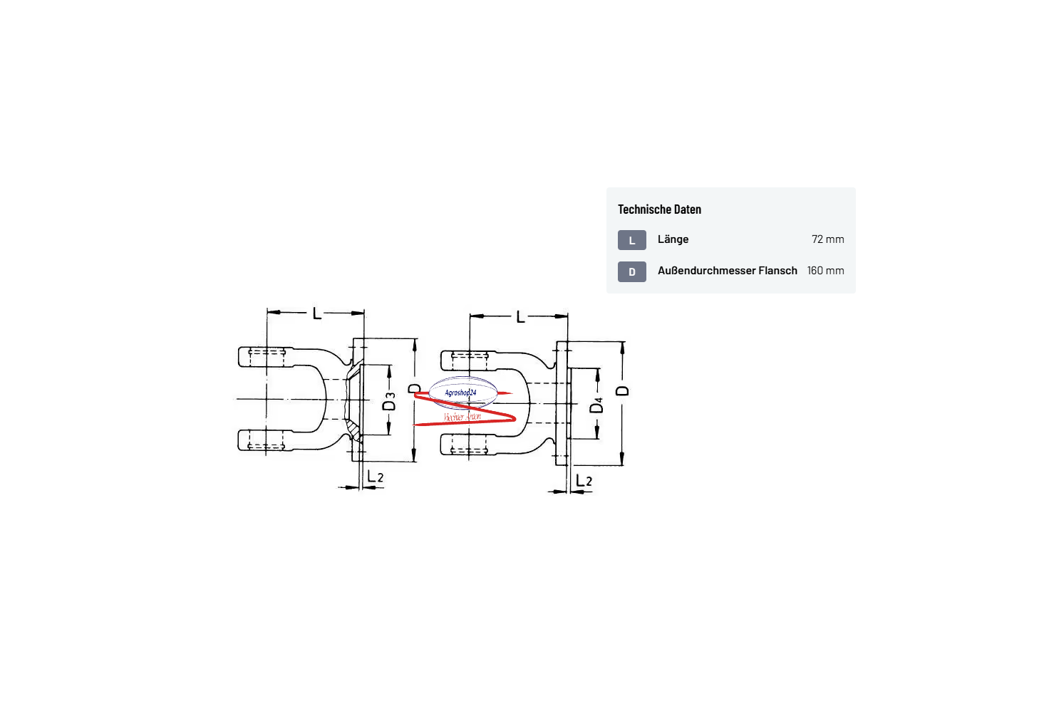 Die Flanschgabel W 2500 mit 72 mm Länge und 160 mm Flanschaußendurchmesser gewährleistet optimale Kompatibilität und Langlebigkeit im professionellen Einsatz.
