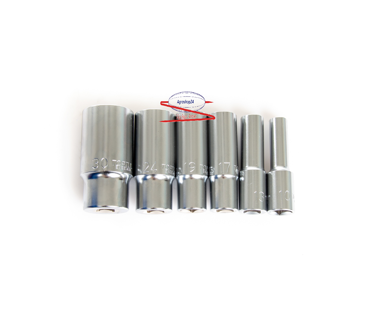 x6 Steckschlüsseleinsätze 1/2" in den Größen 10, 13, 17, 19, 24, 30 mm (DIN 3124)