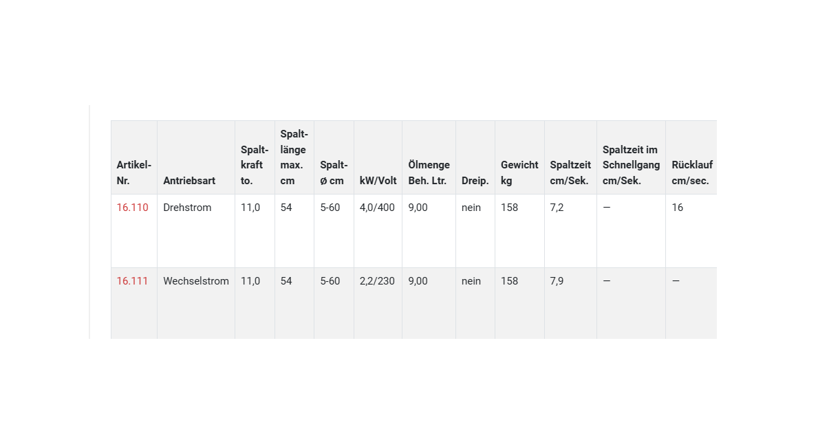 Mit einer Spaltkraft von 11,0 Tonnen und einem 4,0 kW Motor bewältigt er Kurzholz bis 54 cm mühelos.