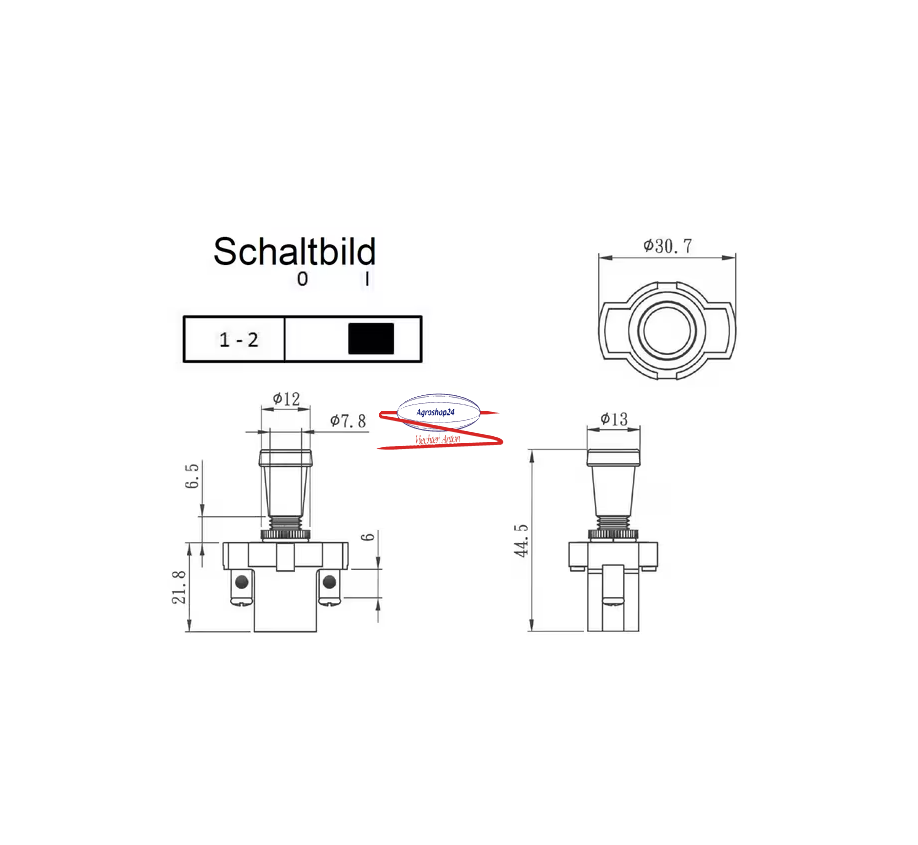 Mit 48 mm Durchmesser und robustem Design eignet sich dieser Schalter perfekt für den Einbau in Traktoren und Agrarmaschinen.